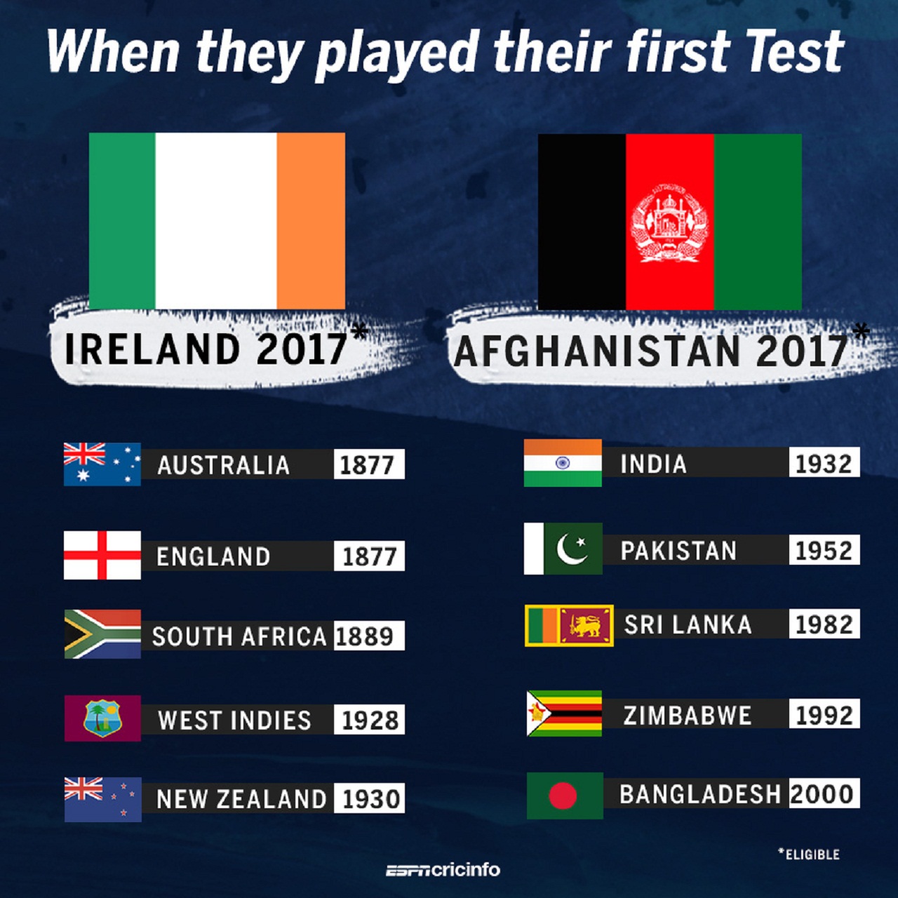 Afghanistan and Ireland have got full membership of ICC Through this, they appeared as a test-playing country. After 17 years, the number of test-playing nations increased. Earlier, Bangladesh got the last test status, in 2000. Ireland and Afghanistan have been given unanimous decision on the status of Test status at the ICC meeting held in London on Thursday. From now on there are 12 number of test playing nations.