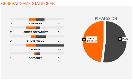 Korea Republic wins the first semi-final of AFC Asian Cup. They defeated Iraq who defeated Iran in their previous match which was quite a shocking result. Not only that, even in this match the team with the most amount of ball possession is Iraq although they aren’t away by much. While Iraq couldn’t create decent chances, Korea republic made the very best use of the chances they got and thus this match ended as Korea Republic moving to the Finals.