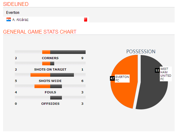 Everton’s loosing streak stops in the league with their draw to West Ham United by 1-1. Now they have 1 draw in their lat 5 matches. the match itself was full of attacks and counter-attacks but in the first half neither team could score. The half-time score was 0-0. however the break came for West Ham few minutes after the game resumed and they were up by 1-0. till the initial 90 minutes play, the score was 1-0 for west Ham. Everton finally equalized on the injury time of the match and managed to get 1 point from this match. both teams played nearly equal in the field as well. the edge however was on West Ham’s side but its too bad for them that they couldn’t get a complete 3 points from this match.