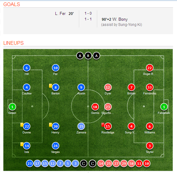 With this draw both teams walked out with 1 points. However Swansea City were the favorites in this match and with a draw Swansea City will not be very happy. QPR Scored very early in the match as well. They almost got a win in this much but perhaps lady luck didn’t support them.