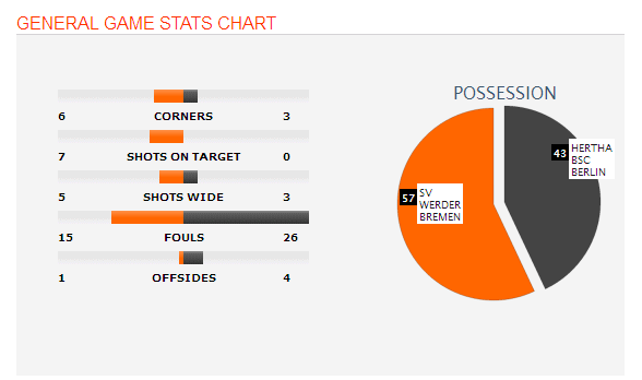 Bremen defeated Hertha in Bundesliga and with this win they are in the 12th position of the league. Bremen dominated the match in all respect and created more chances than their opponents. They had to wait nearly till the end of first half of the match. On the 69th minute of the match the second goal of the match came for the winners.