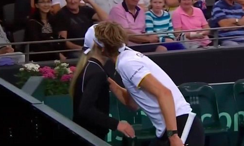 VIDEO: Alexander Zverev kisses female spectator on the hand at Boodles Challenge